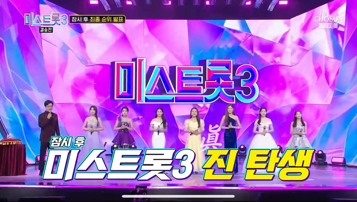 미스트롯3가 3개월간의 대장정을 마치고 3월 7일 결승을 치루며 최종 진, 선, 미가 결정 되었습니다. 아래 링크에서 진, 선, 미 결과 확인하실 수 있습니다.
